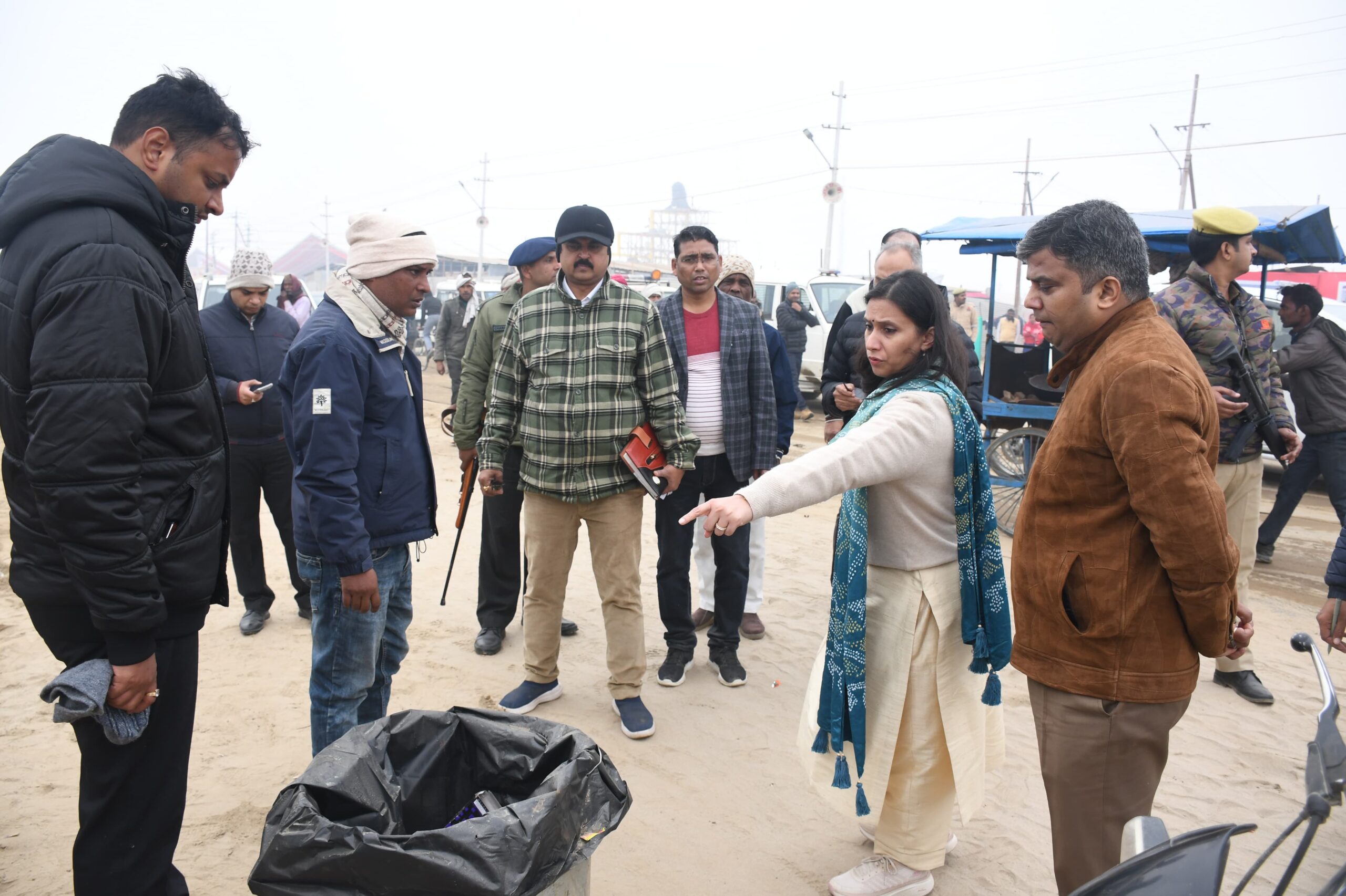 तत्पश्चात मण्डलायुक्त ने संगम नोज मार्ग पर सेक्टर कार्यालय के सामने बनाये गये टॅायलेटों की क्रियाशीलता, साफ-सफाई, पानी की सप्लाई, जेट स्प्रे से सफाई के कार्य का निरीक्षण किया। निरीक्षण के दौरान टॉयलेटों में पानी की सप्लाई न होने तथा साफ-सफाई की अच्छी व्यवस्था न पाये जाने पर मण्डलायुक्त ने कड़ी नाराजगी व्यक्त की तथा टॉयलेट की साफ-सफाई के लिए नियुक्त सभी कर्मियों को बुलाकर साफ-सफाई की अच्छी स्थिति न होने के कारणों के बारे में पूछे जाने पर बताया गया कि पानी की आपूर्ति आज नहीं होने से साफ-सफाई का कार्य ठीक से नहीं हो पाया है। पानी की सप्लाई आते ही सभी टॉयलेटों को क्लीन कर दिया जायेगा। तत्पश्चात मण्डलायुक्त ने जिलाधिकारी व मेलाधिकारी के साथ सभी सेक्टर-4, 5 एवं तत्पश्चात सेक्टर-2 के सभी टॉयलेटों का निरीक्षण कर उनकी साफ-सफाई एवं क्रियाशीलता को देखा। सेक्टर-4, 5 एवं 2 में टॉयलेट क्रियाशील पाये गये एवं पानी की सप्लाई भी थी, परंतु सफाई हेतु नामित वेण्डर के द्वारा टॉयलेट के क्लीनिंग हेतु फिनायल, हार्पिंक, दुर्गंधमुक्त केमिकल (ओडोर फ्री) एवं अन्य आवश्यक सामान सफाई कर्मिंयों को उपलब्ध नहीं कराया जा रहा था, जिसपर उन्होंने कड़ी नाराजगी व्यक्त करते हुए सम्बंधित वेण्डरों के दो प्रतिशत का अर्थदण्ड लगाये जाने के लिए कहा है। उन्होंने कहा कि साफ-सफाई की अच्छी व्यवस्था सुनिश्चित किया जाना है, इसमें किसी भी प्रकार की लापरवाही क्षम्य नहीं है। उन्होंने कहा कि सभी टॉयलेटों की नियमित साफ-सफाई के साथ ओडोर फ्री बनाये रखने के निर्देश दिए है। मण्डलायुक्त ने सेक्टर-1, 2, 4 एवं 5 के सेक्टर मार्गों पर रखीं हुई कम्युनिटी डस्टबिनों एवं उनमें लगाये गये लाइनर बैग का भी निरीक्षण किया। उन्होंने सम्बंधित अधिकारियों से कितने डस्टबिनों एवं लाइनर बैग की आवश्यकता है, कितनी उपलब्धता है, की जानकारी लेते हुए सभी मार्गों पर साफ-सफाई की अच्छी व्यवस्था सुनिश्चित करने के निर्देश दिए है। निरीक्षण के दौरान सेक्टर-4 की सड़क पर कुछ स्थानों पर सामानों की बिखरे पॉलीथिन बैगों को डस्टबिन में रखने के निर्देश दिए और सफाई इंस्पेक्टर से कहा कि मार्गों पर किसी भी प्रकार की कोई गंदगी नहीं दिखनी चाहिए और डस्टबिनों को नियमित रूप से खाली किया जाये। उन्होंने सफाई इंस्पेक्टर से सैनिटेशन कालोनी में रहने वाले सफाई कर्मियों को उपलब्ध कराये जा रहे पेयजल, खाने-पीने की व्यवस्था, शौचालय, अलाव की व्यवस्था कराने के निर्देश दिए है। निरीक्षण के दौरान जिलाधिकारी ने मुख्य चिकित्साधिकारी से सेक्टरों में एम्बुलेंस व चिकित्सकों की टीम लगाये जाने एवं मेला क्षेत्र का विजिट कर स्वास्थ्य सुविधाओं को सुनिश्चित कराये जाने के निर्देश दिए है। उन्होंने था