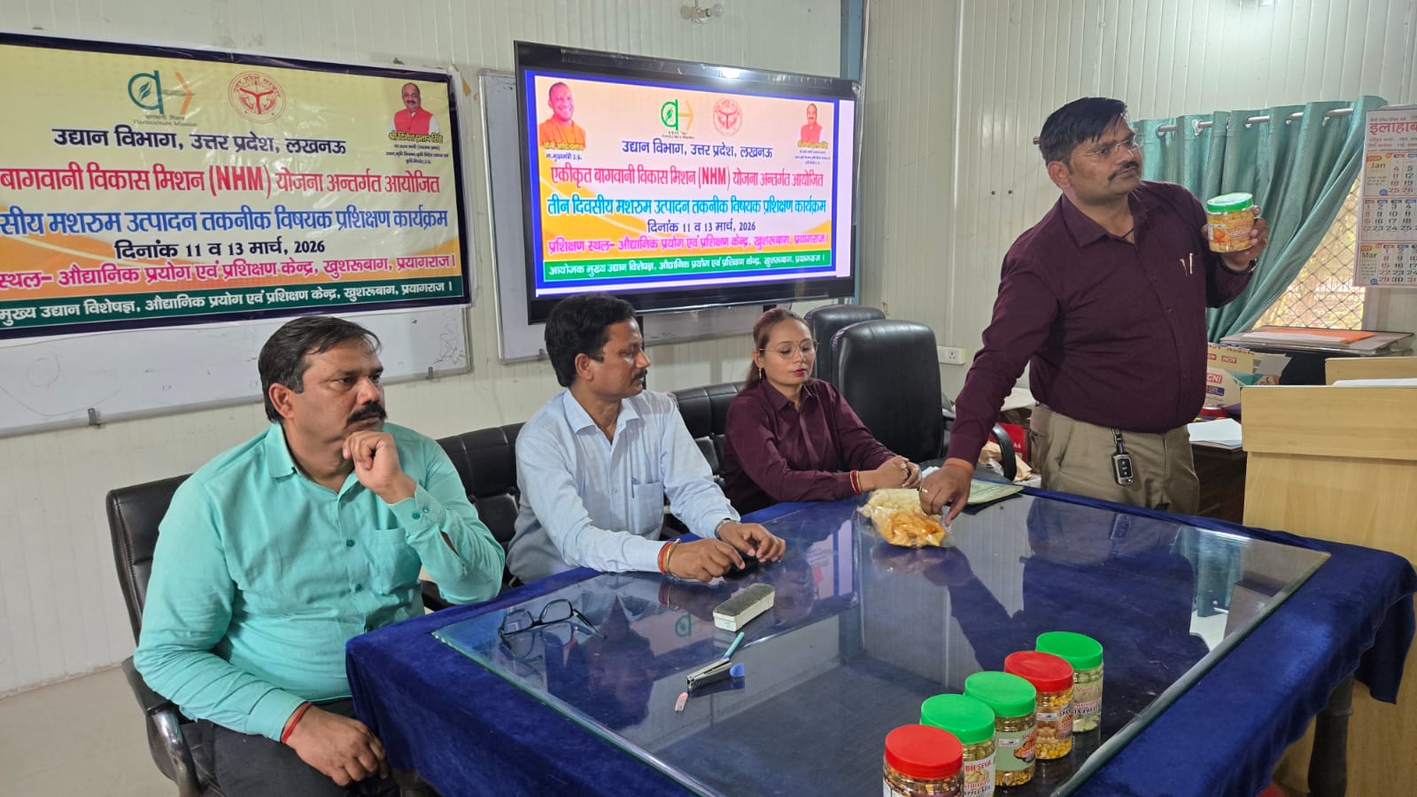 प्रयागराज। औद्यानिक प्रयोग एवं प्रशिक्षण केंद्र, खुसरोबाग प्रयागराज में एकीकृत बागवानी विकास मिशन योजना के अंतर्गत औद्यानिक फसलों के उत्पादन प्रबंधन, संरक्षित खेती तथा मशरूम उत्पादन तकनीक पर आधारित तीन दिवसीय प्रशिक्षण कार्यक्रम का शुभारंभ किया गया। कार्यक्रम का उद्घाटन मुख्य उद्यान विशेषज्ञ डॉ. वीरेंद्र सिंह द्वारा किया गया। उद्घाटन सत्र में डॉ. सिंह ने बताया मुख्य उद्यान विशेषज्ञ डॉक्टर वीरेंद्र सिंह द्वारा कम जोत के आकार को देते हुए आम अमरूद एवं अन्य फलदार पौधों की सघन बागवानी तथा उसके लाभ एवं कनोपी प्रबंधन फसल सुरक्षा के विषय में विस्तृत जानकारी दी गई सब्जियों की मांग निरंतर बढ़ती जा रही है।साथ ही ये भी बताया गया की वर्तमान समय मे शाकाहारी व्यक्तिओ के लिए समुचित पोषण सुनिश्चित करने के लिए तथा पढ़े लिखे नौजवानों के लिए स्वरोजगार स्थापित करने की दृष्टि से मशरूम उत्पादन का विशेष महत्व हैऐसे में किसान मशरूम उत्पादन अपनाकर एक अच्छा रोजगार प्राप्त कर सकते हैं और अपनी आय में वृद्धि कर सकते हैं। कार्यक्रम के तकनीकी सत्र में डॉ. एस. आर. बघेल, सीईओ शुभ सेवा एग्रो वेलफेयर फाउंडेशन, लखनऊ ने मशरूम की विभिन्न प्रजातियों विशेष रूप से ओयस्टर, बटन एवं मिल्की मशरूम की विशेषताओं तथा उनके बाजार मूल्य पर विस्तार से चर्चा की। उन्होंने बताया कि मशरूम सब्जियों की पूर्ति का एक महत्वपूर्ण साधन है। मशरूम पूर्णतः शाकाहारी एवं उच्च पोषणयुक्त आहार है, जिसका उपयोग पौष्टिक सब्जियों के रूप में किया जाता है। तकनीकी सत्र में मशरूम प्रसंस्करण विशेषज्ञ कुमारी ईशा ने मशरूम से बनने वाले विभिन्न मूल्य संवर्धित उत्पादों जैसे बर्गर, नमकीन, अचार, बिस्किट आदि के बारे में जानकारी दी। उन्होंने बताया कि इन उत्पादों के निर्माण से किसान और उद्यमी अतिरिक्त आय अर्जित कर सकते हैं। केंद्र के प्रशिक्षण प्रभारी ने बताया कि प्रशिक्षण के दौरान प्रतिभागियों को तकनीकी जानकारी के साथ-साथ प्रायोगिक कार्यों के माध्यम से भी प्रशिक्षित किया जाएगा। इसके अतिरिक्त प्रतिभागियों को मशरूम उत्पादन इकाइयों का भ्रमण भी कराया जाएगा, जिससे उन्हें व्यावहारिक अनुभव प्राप्त हो सके। Post Views: 10 Post navigation जिलाधिकारी की अध्यक्षता में जिला तकनीकी समन्वय समिति की बैठक संपन्न समिति द्वारा जनपद के विभिन्न विकासखंडों के कुल 67 चेकडैम, 65 एनीकट संरचनाएं, 172 तालाबों एवं 153 रूफटॉप रेनवॉटर हार्वेस्टिंग प्रणाली के निर्माण हेतु अनुमोदन से संबंधित प्रस्तावों को स्वीकृति प्रदान की गई प्रधानमंत्री किसान सम्मान निधि योजना के अंतर्गत जनपद प्रयागराज में लगभग 5 लाख 80 हजार कृषकों को लगभग 116 करोड़ रुपए डीबीटी के माध्यम से हुए हस्तांतरित