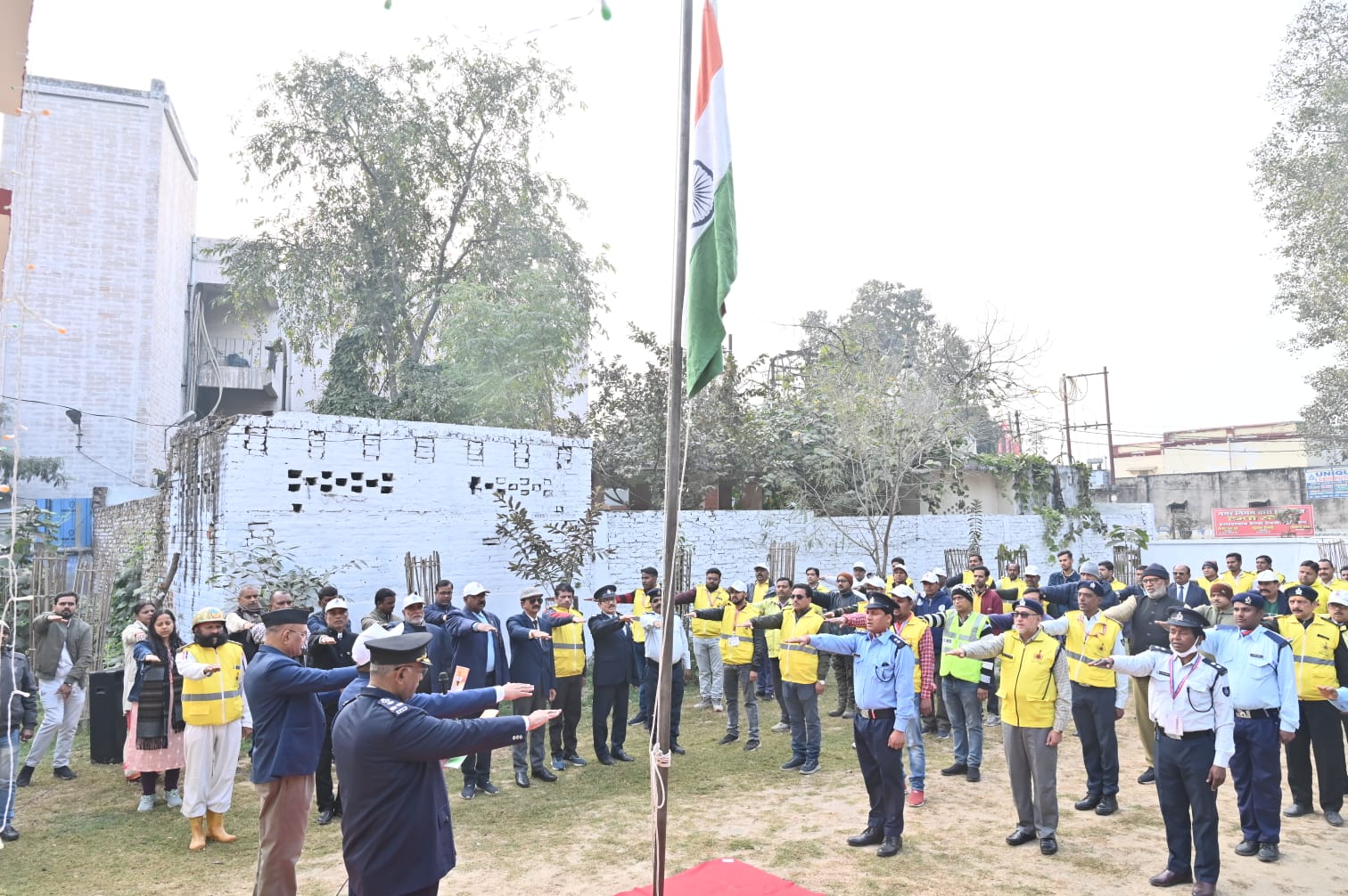 26 जनवरी, 2026 को नागरिक सुरक्षा कार्यालय प्रांगण में उप नियंत्रक नागरिक सुरक्षा नीरज मिश्रा द्वारा ध्वजारोहण किया गया एवं समस्त कार्मिकों एवं स्वयंसेवकों को राष्ट्रीय हित में संविधान के नियमों से संबंधित संकल्प दिलाया गया जिसमें संकल्प ग्रहण उपरांत चर्चा में संविधान के नीति निर्देश एवं नागरिकों के अधिकार एवं दायित्व पर विभिन्न प्रखंडों के वरिष्ठ सदस्यों एवं कार्यालय कार्मिकों द्वारा अपने विचार व्यक्त किए गए ,कार्यक्रम के एक दिन पूर्व कार्यालय को तिरंगे लाइट से सजाया गया तथा स्वच्छता अभियान चलाया गया, अपने संबोधन में चीफ वार्डन अनिल कुमार द्वारा संविधान एवं राष्ट्रीय हित में नागरिकों के कर्तव्य पर अपने विचार रखें उन्होंने कहा कि नागरिक सुरक्षा के स्वयंसेवक सामाजिक कार्य में बिना किसी भेदभाव के रुचि रखते हैं ,जो संविधान की परिकल्पना हमारे पूर्वजों ने की थी, बिना जन सेवा के उसे पूर्ण नहीं किया जा सकता, उप नियंत्रक नीरज मिश्रा द्वारा नागरिक सुरक्षा अधिनियम 1968 एवं संविधान के द्वारा प्रदत्त अधिकारों पर विचार व्यक्त करते हुए समस्त वरिष्ठ सदस्यों के कार्यों की प्रशंसा करते हुए बताया गया कि सिविल डिफेंस के पदाधिकारी संवैधानिक नियमों के अंतर्गत समाज सेवा करते हैं जिसकी मान्यता अंतरराष्ट्रीय स्तर पर है, कार्यक्रम का संचालन वरिष्ठ सहायक उप नियंत्रक राकेश कुमार तिवारी ने किया, धन्यवाद ज्ञापन डिवीजनल वार्डन रौनक गुप्ता ने किया, कार्यक्रम में सर्वश्री नीरज मिश्रा, अनिल कुमार ,राकेश कुमार तिवारी, रौनक गुप्ता, मनी मेहरा, राजीव भनोट, श्री कृष्ण तिवारी, पूनम गुप्ता, डॉ शशांक ओझा ,एल. के. अहिरवार ,राजेंद्र तिवारी एवं बड़ी संख्या में सदस्य व स्वयंसेवकों ने प्रतिभाग किया।* Post navigation 77वें गणतंत्र दिवस पर एनसीसी ग्रुप मुख्यालय प्रयागराज में राष्ट्रभक्ति का भव्य आयोजन जिलाधिकारी ने गणतंत्र दिवस पर कलेक्टेªट में झण्डा फहराया