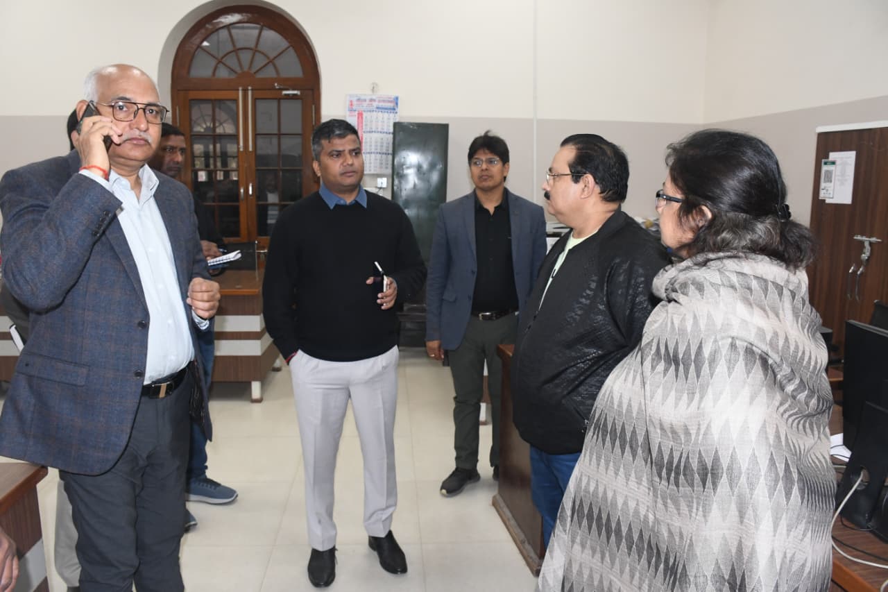 सभी अपर जिलाधिकारी एवं नगर मजिस्ट्रेट नियमित रूप से पटलों का निरीक्षण करते हुए कार्मिकों की समय से उपस्थिति सुनिश्चित कराए प्रशासनिक कार्यों में पारदर्शिता, समयबद्धता और गुणवत्ता सुनिश्चित करने के जिलाधिकारी ने दिए निर्देश प्रयागराज 30 जनवरी जिलाधिकारी श्री मनीष कुमार वर्मा ने शुक्रवार को प्रातः 10ः00 बजे कलेक्ट्रेट परिसर स्थित कार्यालयों का औचक निरीक्षण किया तथा आवश्यक निर्देश दिये हैं। उन्होंने सभी कक्षों में उपस्थिती पंजिका का निरीक्षण किया तथा निरीक्षण के समय अनुपस्थित विभिन्न अनुभाग के 38 पटल सहायकों एवं कर्मचारियों का स्पष्टीकरण प्राप्त करने तथा स्पष्टीकरण संतोषजनक न होने पर एक दिन का वेतन रोके जाने का निर्देश दिया है। उन्होंने कलेक्ट्रेट परिसर में स्थित सभी कार्यालयों एवं पटल का भ्रमण कर प्रशासनिक कार्यों, अभिलेखों का रख-रखाव, जनसुनवाई व्यवस्था और कार्मिकों की कार्यप्रणाली की जांच करते हुए आवश्यक निर्देश दिये हैं। उन्होंने निरीक्षण के दौरान सभी अपर जिलाधिकारी एवं नगर मजिस्ट्रेट को नियमित रूप से सभी कक्षों का निरीक्षण कर सभी कार्मिको की समय से उपस्थिति सुनिश्चित कराये जाने का निर्देश दिया है। इस दौरान उन्होंने अधिकारियों और कर्मचारियों से कार्यों की प्रगति की जानकारी ली और प्रशासनिक कार्यों में पारदर्शिता, समयबद्धता और गुणवत्ता सुनिश्चित करने के निर्देश दिए। जिलाधिकारी ने कलेक्ट्रेट परिसर एवं सभी कक्षों में साफ-सफाई की अच्छी व्यवस्था और पत्रावलियों के रखरखाव को बेहतर बनाने के निर्देश दिए। उन्होंने पत्रावलियों का रख रखाव सुव्यवस्थित करने के निर्देश दिए, ताकि जरूरत पड़ने पर पत्रावलियों को आसानी से निकाला जा सके। जिलाधिकारी ने अभिलेख संधारण की स्थिति का निरीक्षण किया और आवश्यक निर्देश दिए। उन्होंने कार्यालयी अनुशासन और कर्मचारियों की उपस्थिति सुनिश्चित करने का निर्देश दिया। उपस्थिति पंजिका के औचक निरीक्षण में ईआरके अनुभाग की सुमन श्रीवास्तव, कृति श्रीवास्तव, कविता जैस, आरए अनुभाग के मनोज कुमार सिंह, रेखा श्रीवास्तव, जेआरके अनुभाग के अमित अग्रवाल, जेए अनुभाग के विवेक कुमार यादव, प्रियंका श्रीवास्तव, लक्ष्मीशंकर यादव, मो0 कौनेन अहमद, अपर जिलाधिकारी वित्त एवं राजस्व अनुभाग के आशीष मेहरोत्रा, रज्मे हसन, जी0सी0 अनुभाग के अब्दुर रहमान, सीआरए अनुभाग के महेन्द्र कुमार पाण्डेय, मोनिका यादव, प्रतिमा श्रीवास्तव, अपर जिलाधिकारी नगर अनुभाग के नन्द गोपाल तिवारी, राधारमण चौधरी, अपर जिलाधिकारी नजूल अनुभाग की रंगोली श्रीवास्तव, आफशीन इस्लाम, अपर जिलाधिकारी प्रशासन अनुभाग की रंजना मौर्य, आरआरके अनुभाग के राजेश कुमार वर्मा, लईश अहमद, मंजू श्रीवा